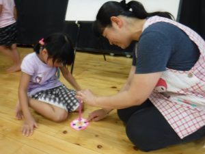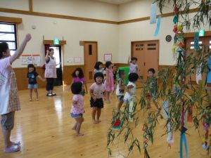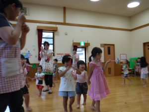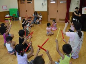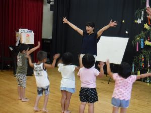 7月12日の「リトミック音楽講座」。本日も保育園児は元気に音楽に合わせて身体を動かしました。
