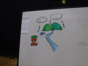 今日は折り紙を使っての創作活動、「傘」を作って「あめふりくまのこ」を歌いました。