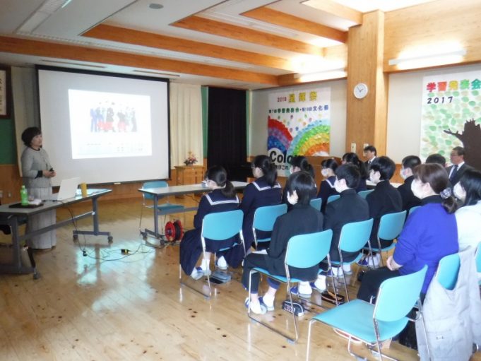前津江中学校生徒、保護者が聴講しました。