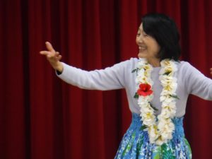 365歩のマーチの大分弁バージョンを聴講者全員で合唱し講演がスタート。