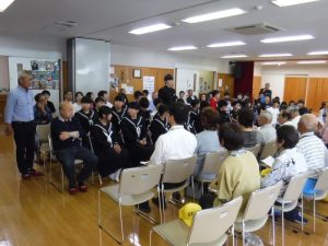 平成25年「前津江町あいさつ運動推進委員会」を発足し、毎月第2火曜日の小学校児童中学校生徒登校時「あいさつ運動」に前津江町住民全体で取り組んでいますが、児童生徒と地域住民との「対面式」を5月15日(水)に開催しました。