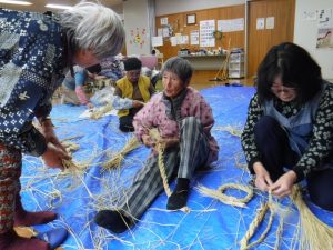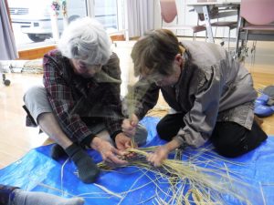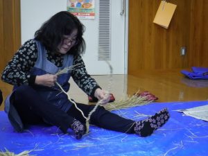 しめ縄は「左綯え」ということで、右綯えとは勝手が違いましたが、お互いに教え合いながら