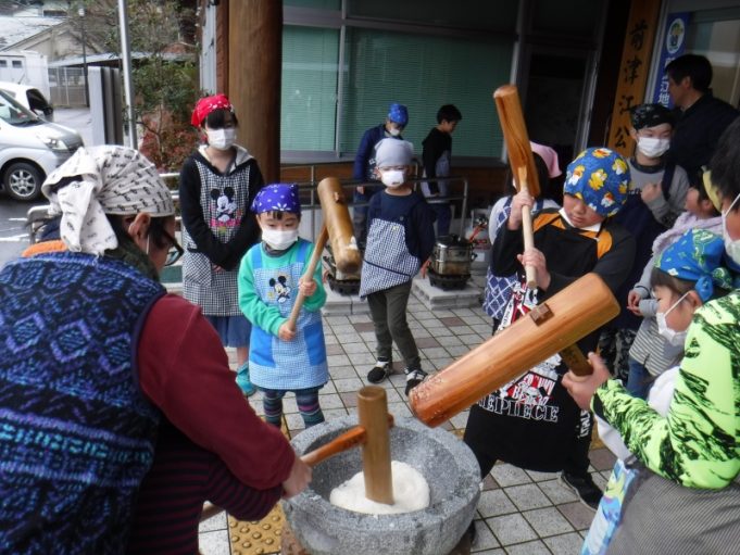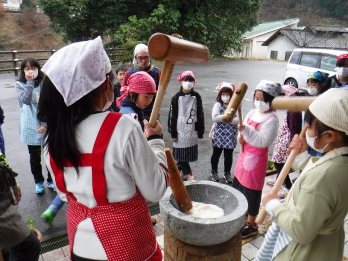 臼と杵で餅つき体験~まえつえジュニア倶楽部