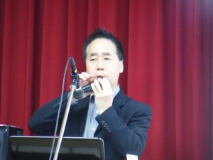 講師はマザーアース人権啓発研究所主宰の山口裕之さんで、土笛「オカリナ」にて曲目