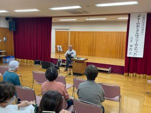 講師は山末博俊先生。「ギターのおじさんはフツーの人だった」と題しご講演いただきました。