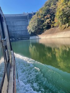 松原ダムの遊覧船に乗船して秋の紅葉と下筌ダムを見学しました。