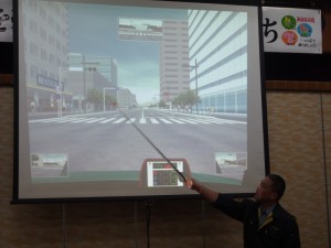 日田警察署交通課に来て頂き、ドライブシュミレーターを使って行いました。