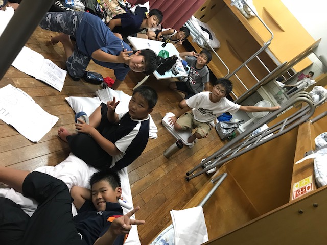 お風呂から上がってしおりを書くはずが、まだ部屋の片づけがすんでませんね。