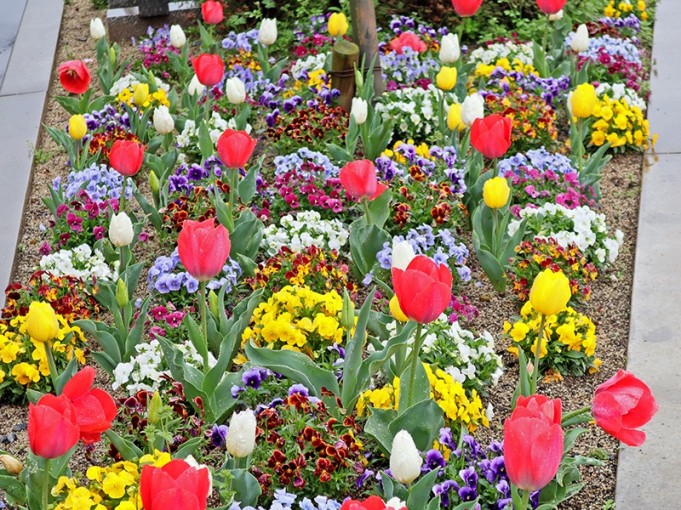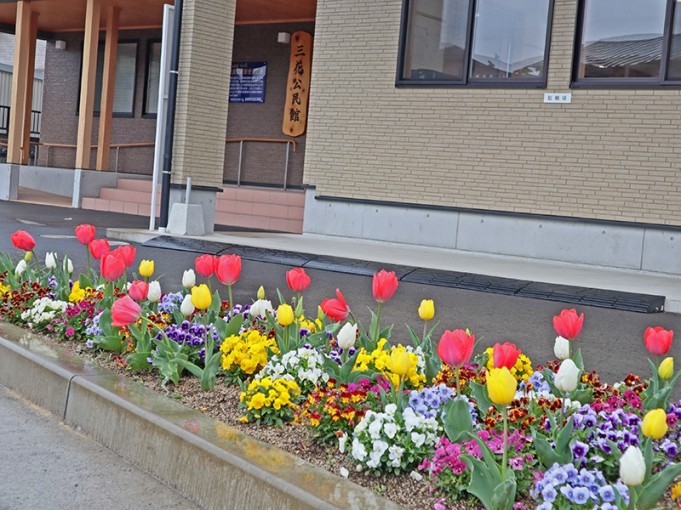 三花公民館の花壇にもチューリップを植えました。今、チューリップの花盛りです。