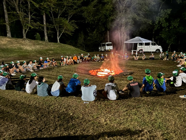 まず、屋久島研修の報告をしました。続いてキャンプファイヤーに点火。それからレクレーション。最後は、輪になってキャンプファイヤーを囲みました。他の少年団と一緒に楽しいひとときを過ごしました。