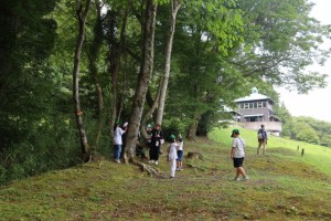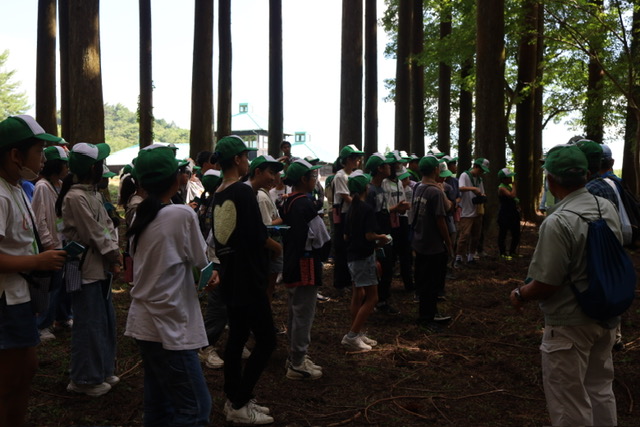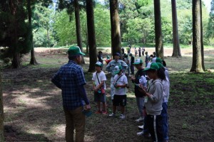 朝食を食べた後は、森の中に入り、緑と森の自然観察会を行いました。木の不思議、森の不思議を学びました。