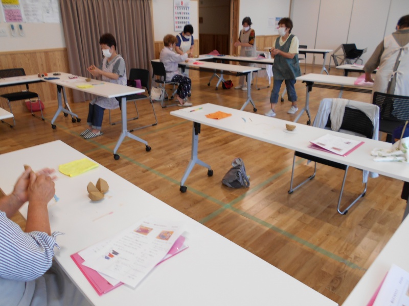 今回は創作「ハギレで作るネックレス作り」と題して、三花地区在住の立花節子先生を講師にお招きしました。