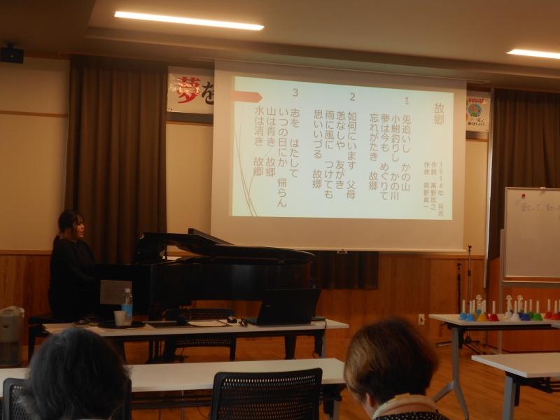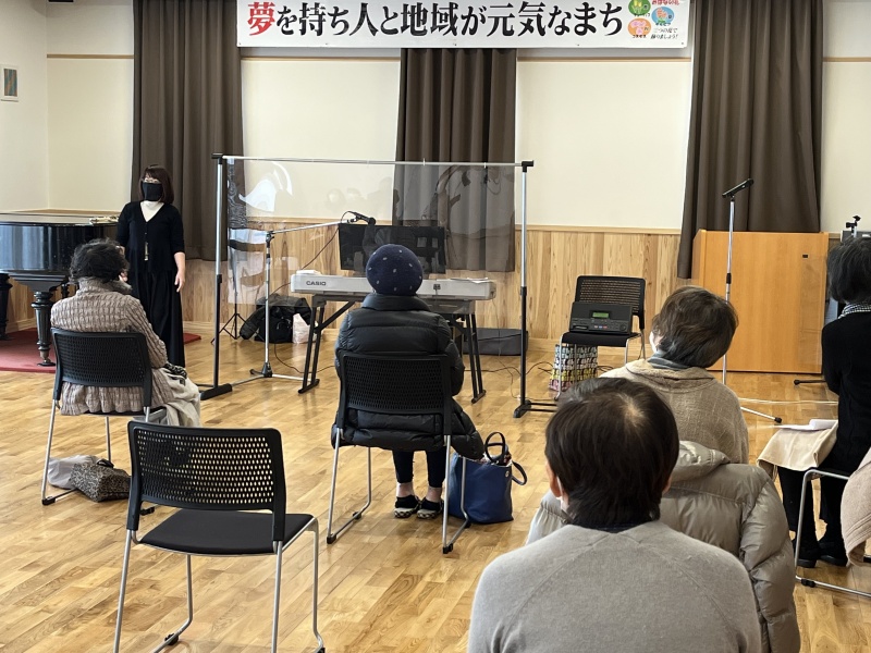 今回は、新型コロナウイルスのオミクロン株拡大の影響もあり、参加人数は少なかったですが、配られた歌詞カードを目で追いながら楽しむことができました。