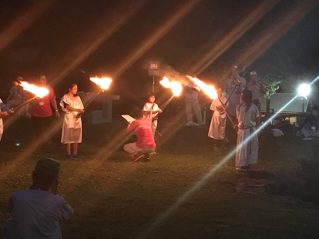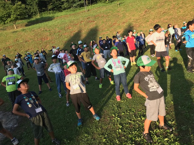 キャンプファイヤーを終え、今はシャワー浴びてます。楽しそうです。