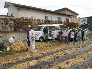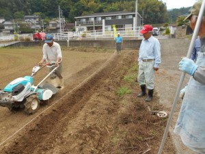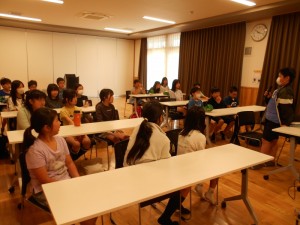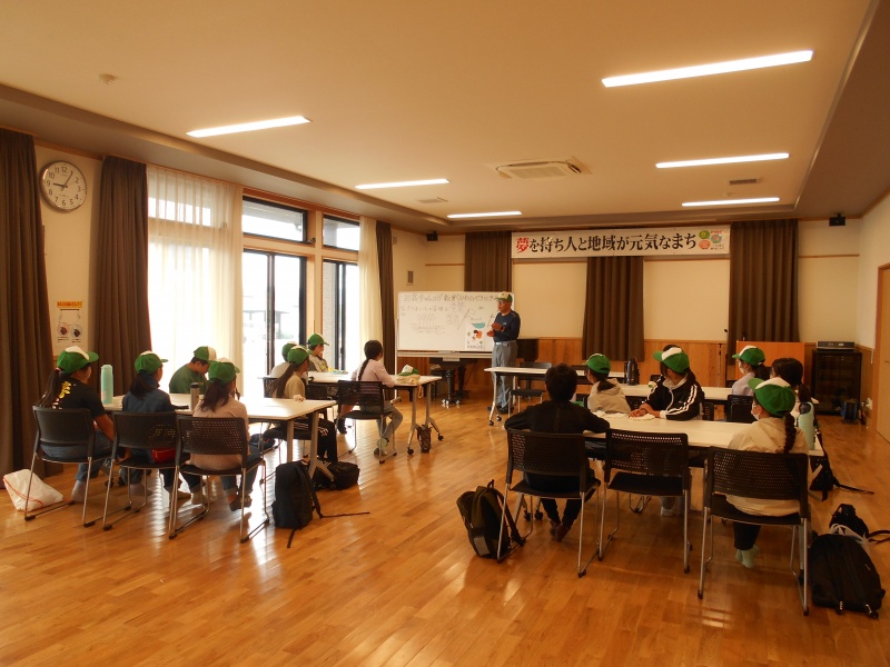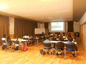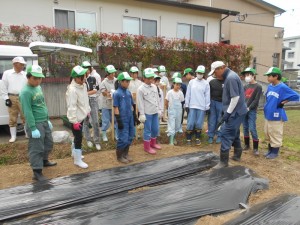 まずは、室内で今日の行程(さつまいもを植るまでと植え方・鍬の持ち方)を説明しました。
