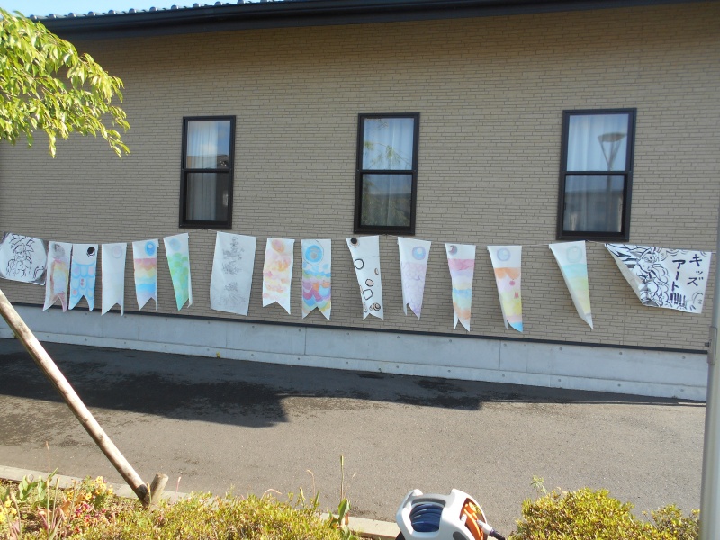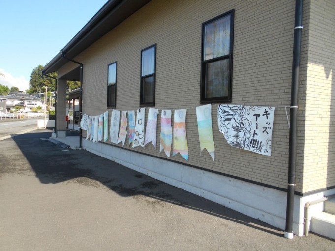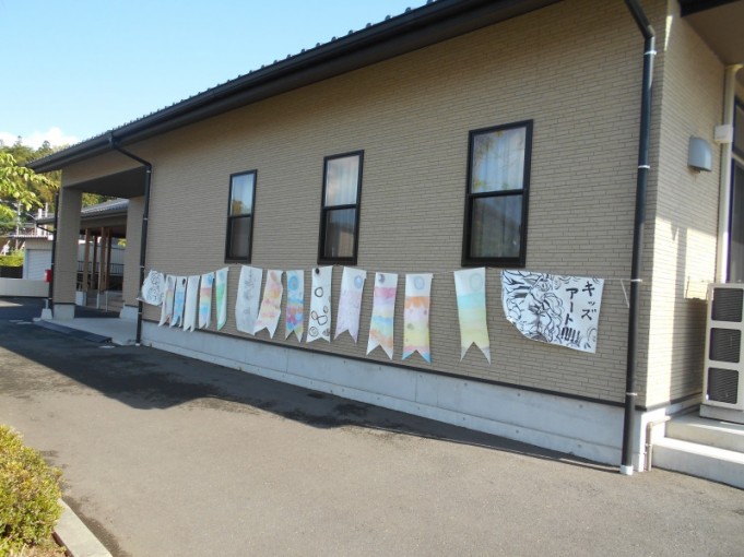 三花公民館のキッズアートの子ども達が作った七夕と、今朝採った笹を使った七夕飾りを玄関前に置いてます!