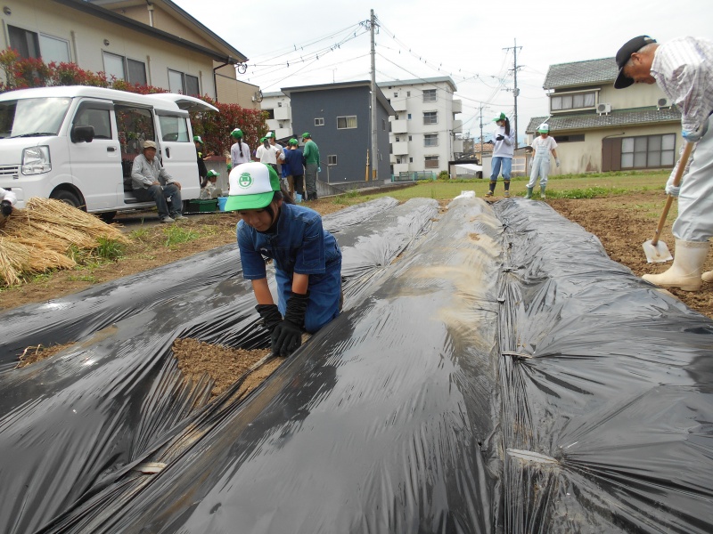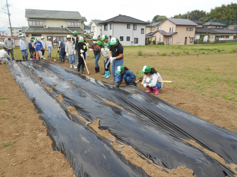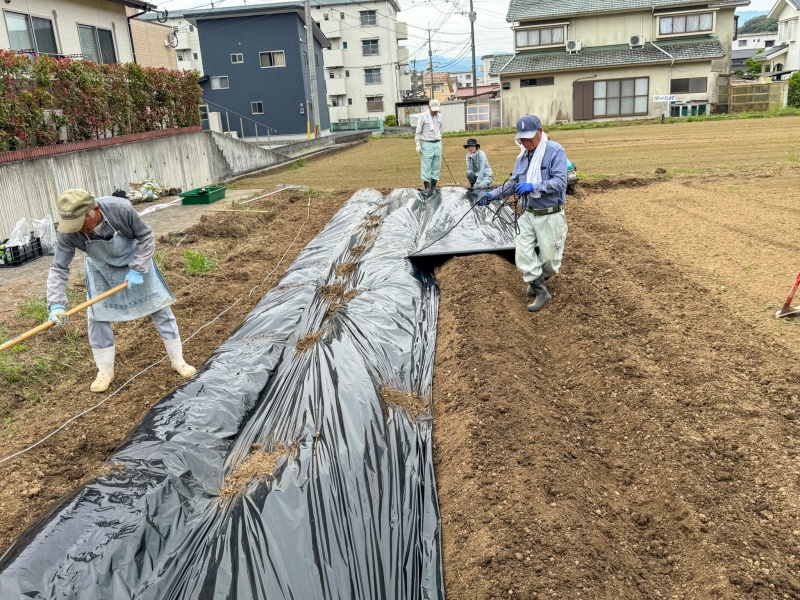 さつまいもの苗植えといっても、それまでの行程は、畝づくり・マルチかけ・マルチをきる・水を入れる・土をほぐす・舟形うえで植える・周りに竹串を刺す・ワラをマルチと苗の間に優しく敷くなど、たくさんの行程があります。