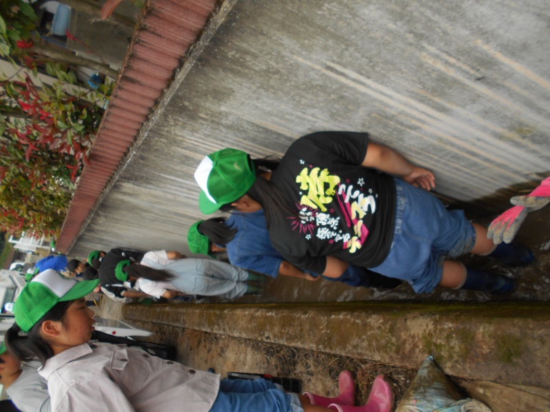 汚れた長靴は水路で歩きながら、洗いながら。。。