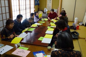 テキスト終了後の茶話会では、みんな笑顔で楽しそうですね♬この日はすずめの学校を始めた小河内町の平川さんも見学にきていました。三花地区すべての分校をまわっているのだそうです。