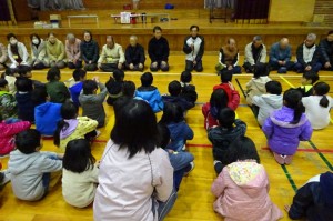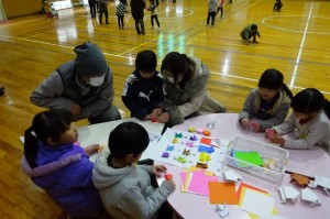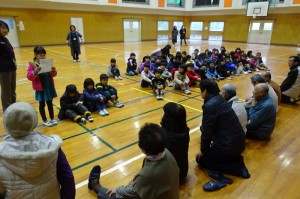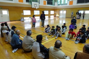 2月14日(火)、地域のボランティアや老人クラブの方々が、三和小学校1年生に昔の遊びの遊び方を指導しました。毎年の恒例となっています。