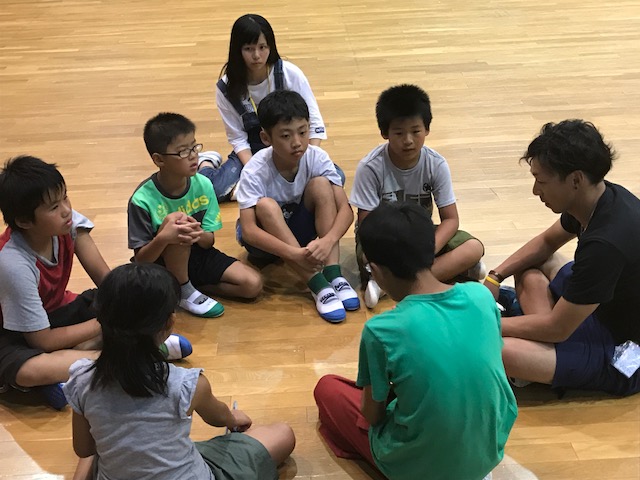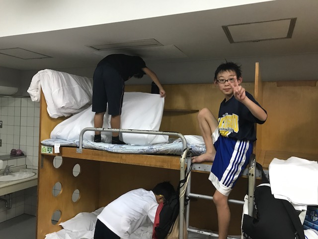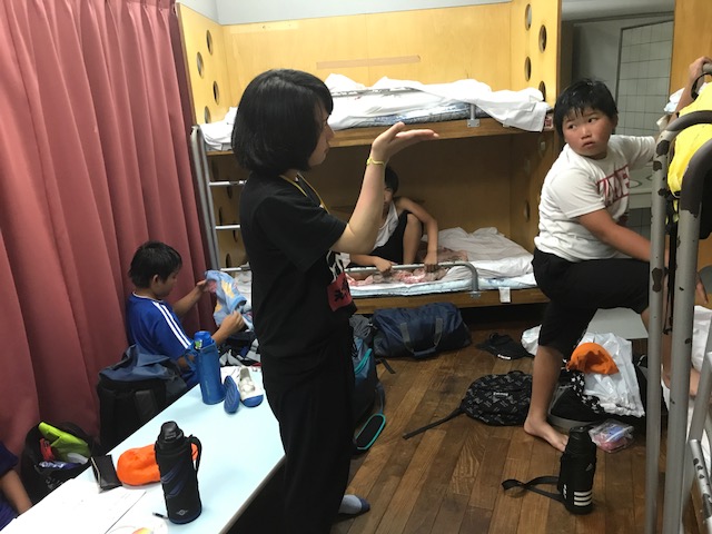消灯前にしっかり自分たちで準備します。なかなか片づけ出来ないのを見て、しっかりと高校生ボランティアが指導してくれてます。