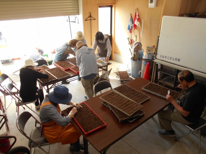 5月17日、ボランティアの方々とサルビアの種まきをしました。