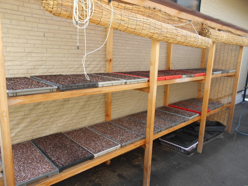 育苗台に乗せて、たっぷり水をかけました。芽が出るまで水やりをします。