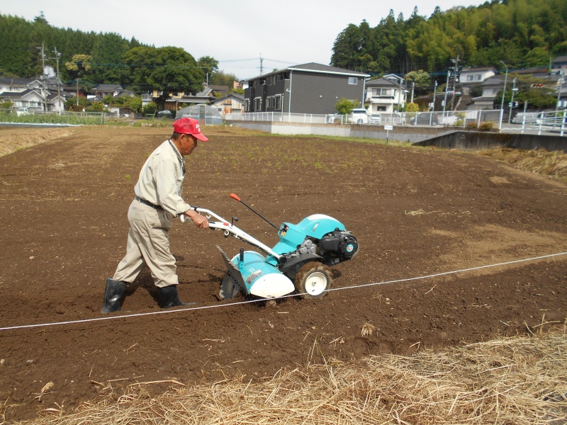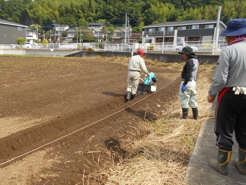 管理機を持参して頂き、畝を立て、周りをならしていきました。
