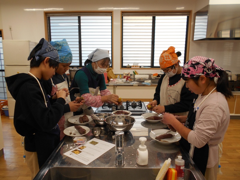 2/14,三花チャレンジ教室(みわどりの少年団)は、自分たちが育てたさつまいもを使ったスイートポテトを作りました。