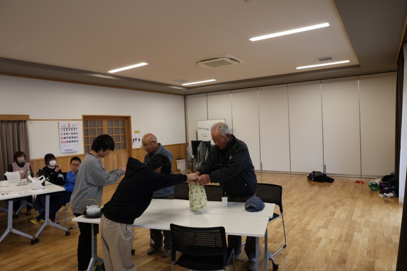 さつまいも栽培を手伝って頂いた三花地区老人クラブの方々へ出来上がったスイートポテトをお渡ししました。