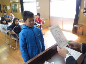 最後に館長から修了証をもらってコスモスっ子教室の1年間の活動が