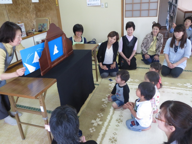 11組の親子が参加し、レクレーションをしたり、紙芝居を見たりして