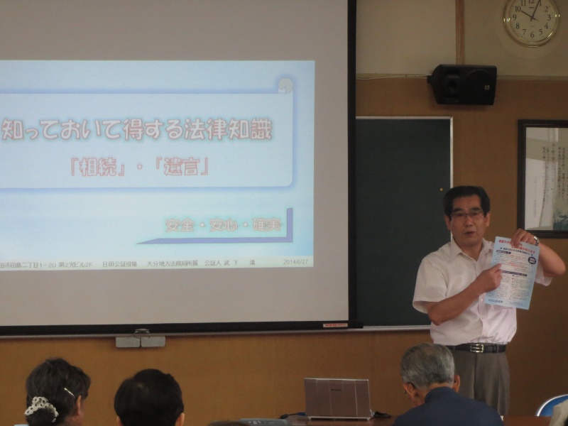講師に日田公証役場の武下満さんをお招きして「相続」と「遺言」について
