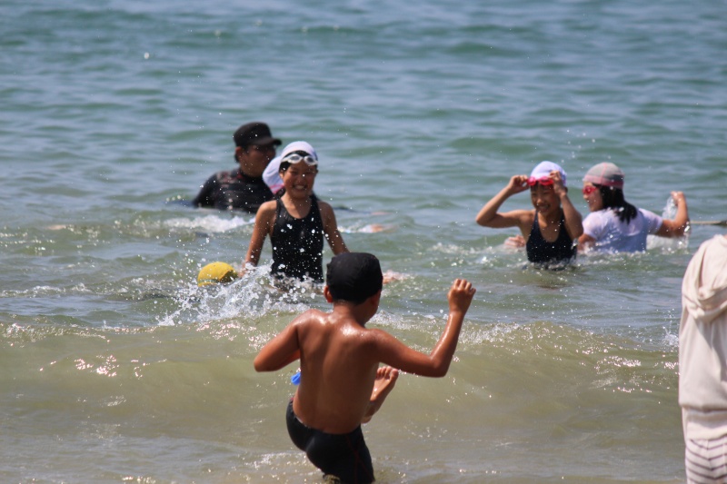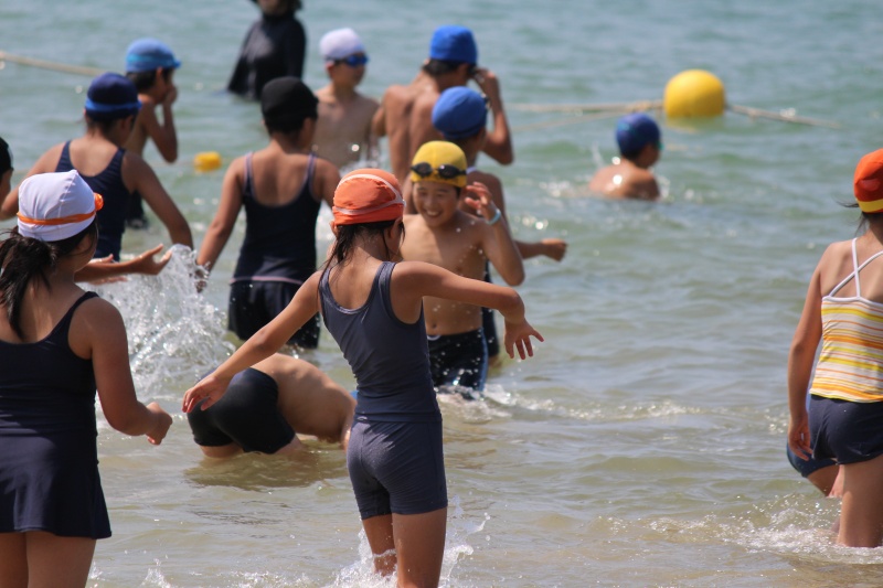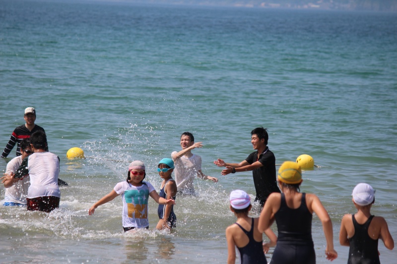 昼からは子どもたち待望の海水浴です。海は遠浅で、綺麗なので