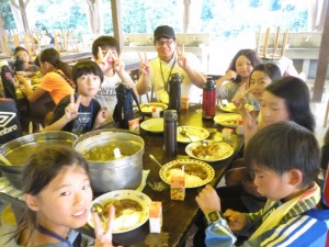 2日目は朝から野外炊飯です。メニューはご飯とみそ汁。