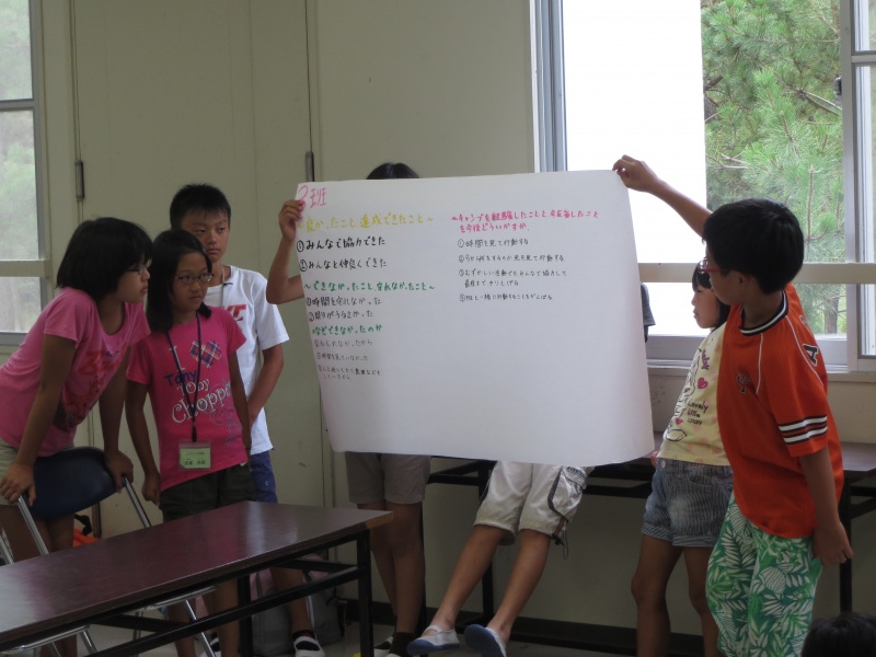 班ごとに分かれて、キャンプで出来たこと、出来なかったこと、出来なかったことは