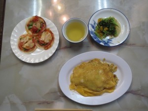 第1回目のメニューはシーフードオムライス、みかんとブロッコリーの