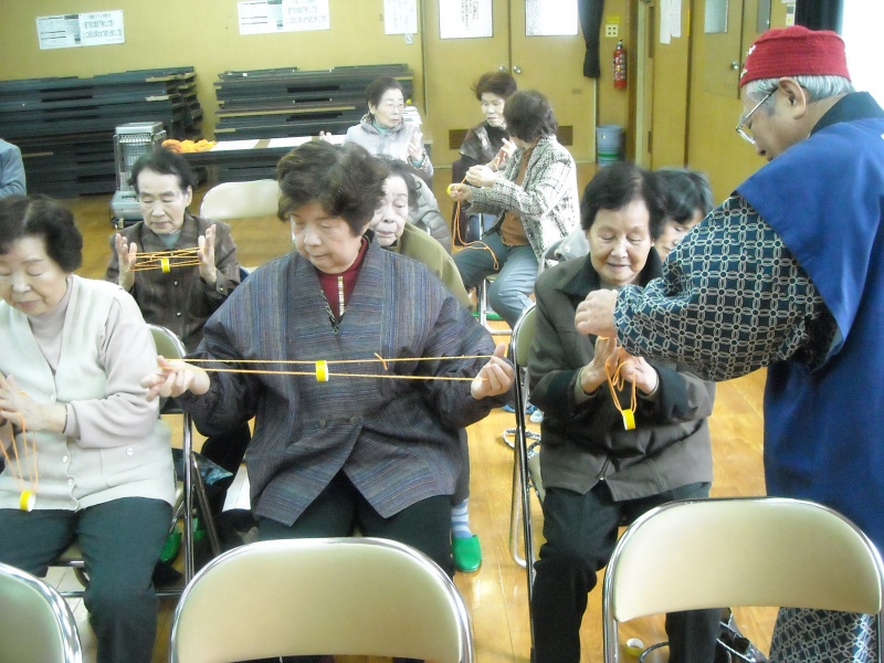 疋田さんから参加者の方にリング抜きの手品を教えていただき、
