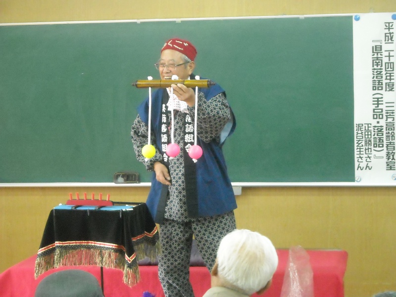 今回は、県南落語組合から疋田勝也さんと泥谷玄生さんをお招きして