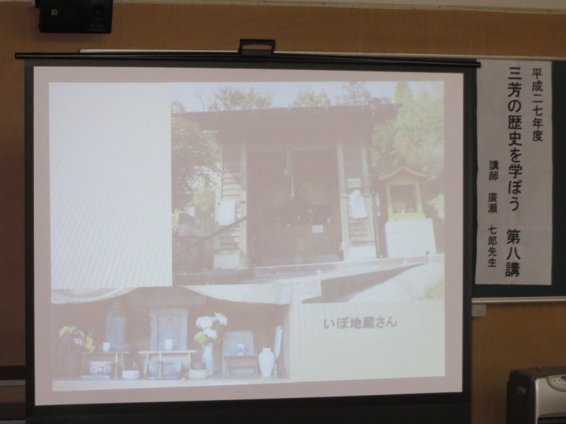 最後に三芳地区にある文化財をスライドを使って説明していただき