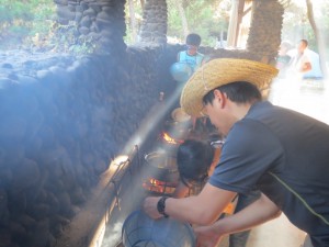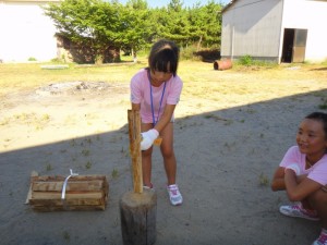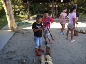 野菜を切ったり炒めたり、まきを割ったり火をおこしたり