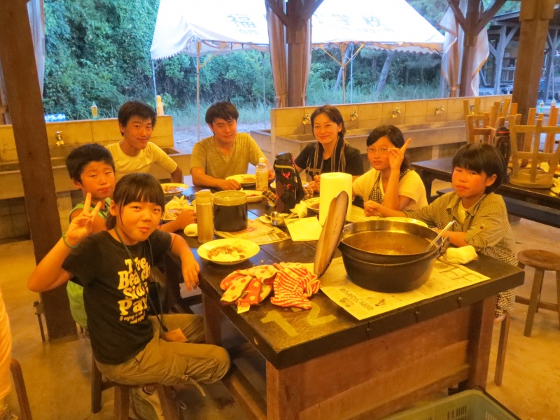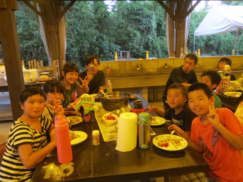 夜ご飯は野外炊飯でカレーを作って食べました。