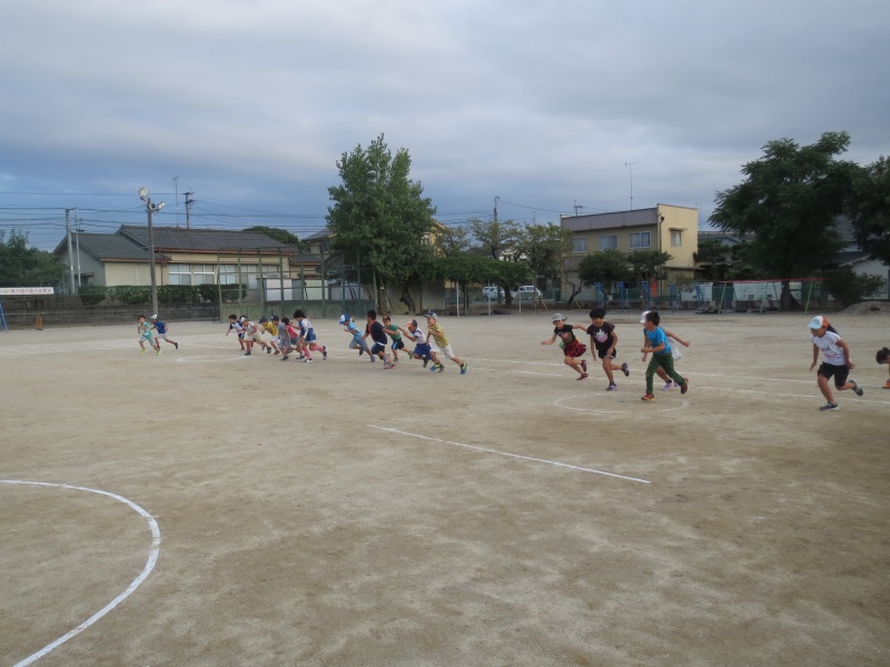 9月21日(水)に3回目の陸上教室を開催しました。 準備体操からグラウンドを2周アップしてから、いつものように 高学年・低学年に分かれて行いました。 低学年は1回目に徒競走のタイムを計っていたので、もう一度徒競走を 行いタイムを計りました。 ほとんどの生徒がタイムを縮めることができており、練習の成果が でたかなと思います。 高学年の生徒はリレー選手が多かったので、リレー形式の練習を 行いました。 運動会は25日日曜日です。練習の成果を発揮して頑張って下さい♪