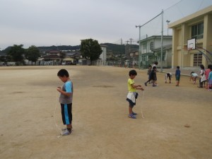 10月14日金曜日に三芳小学校2年生と一緒に昔遊びを行いました。