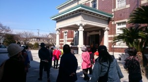 秋月では2班に分かれボランティアガイドさんに説明を受けながら