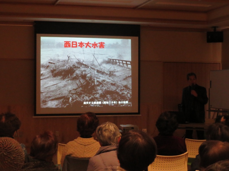 写真や、5年前と昨年の日田の大水害について、説明をうけました。