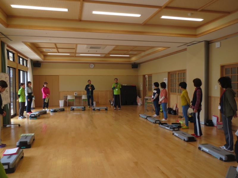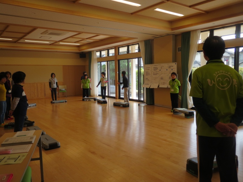 自己紹介を行いました。その後ステップ台の説明とステップの行い方を説明し、
