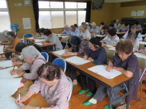 みなさんで実際に、簡単な計算問題を解いたり、昔話を声を出して読んだりしました。