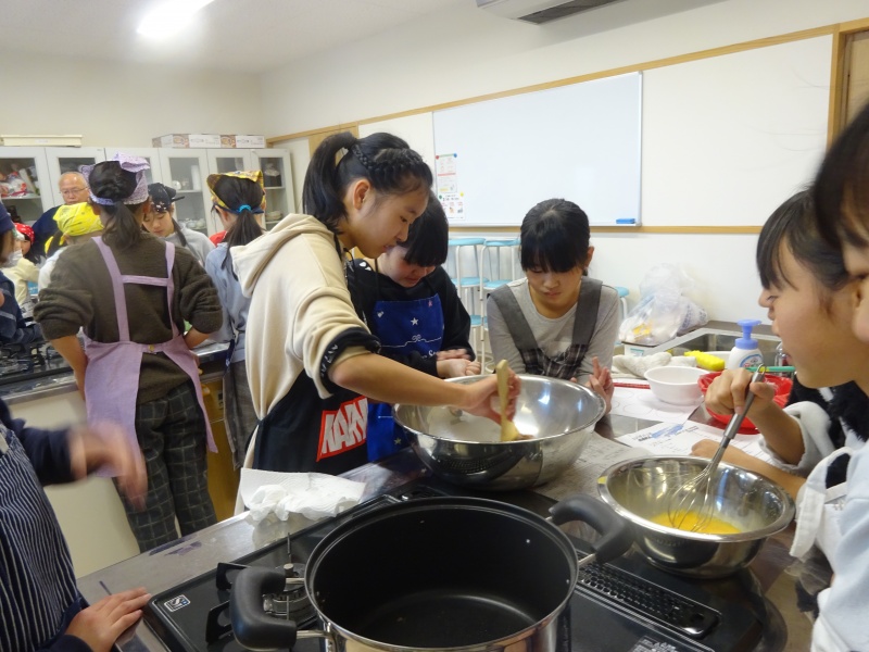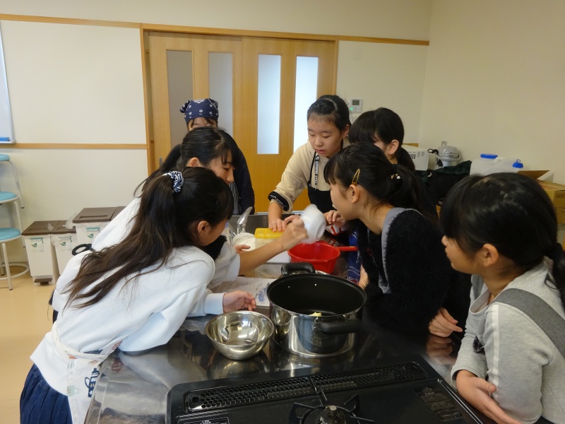 順番で6年生がやってみました。そして、お菓子作りは量を間違えるとおいしくできないので