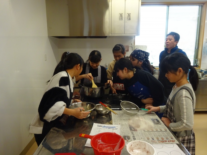 その後厨房に行って各学年ごとに班で別れて作り始めました。